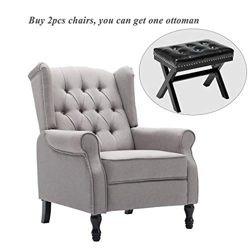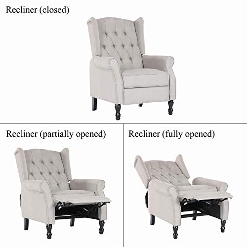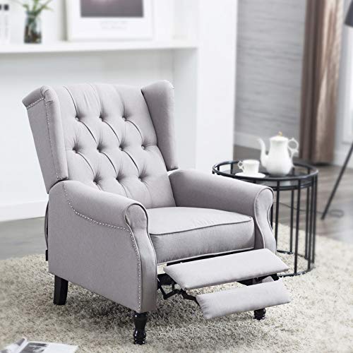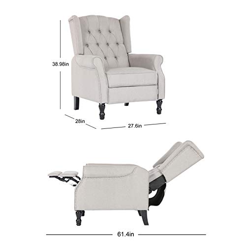 Artechworks Tufted Fabric Push Back Arm Chair Recliner Single Reclining for Adjustable Club Chair Home Padded Seating Living Room Lounge Modern Sofa(Grey)