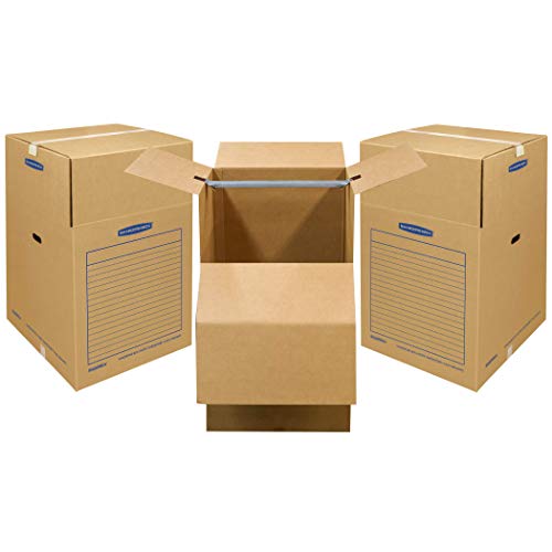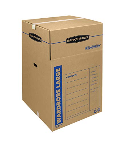 Wardrobe boxes are designed specifically for moving and storage of hanging items. Each box includes a 24 in hanger bar which can accommodate up to linear feet of closet items. The wardrobe box closes completely to keep articles clean. Boxes are constructed from stronger 44 ECT C-Flute Kraft corrugated board and are reusable and recyclable. The actual assembled size of one box is 24 x 24 x 40 Inches while the dimensions for the package as delivered to the doorstep is 25.1 x 41.6 x 17.4 inches.