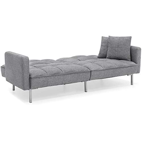 PILLOWS INCLUDED: Comes with 2 pillows to complete the futon sofa’s decorative element; COUCH DIMENSIONS: 75.5″(L) x 28.25″(W) x 33″(H); Weight Capacity: 550 lbs.