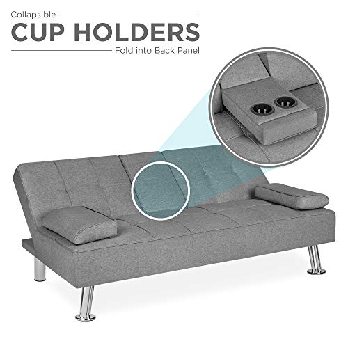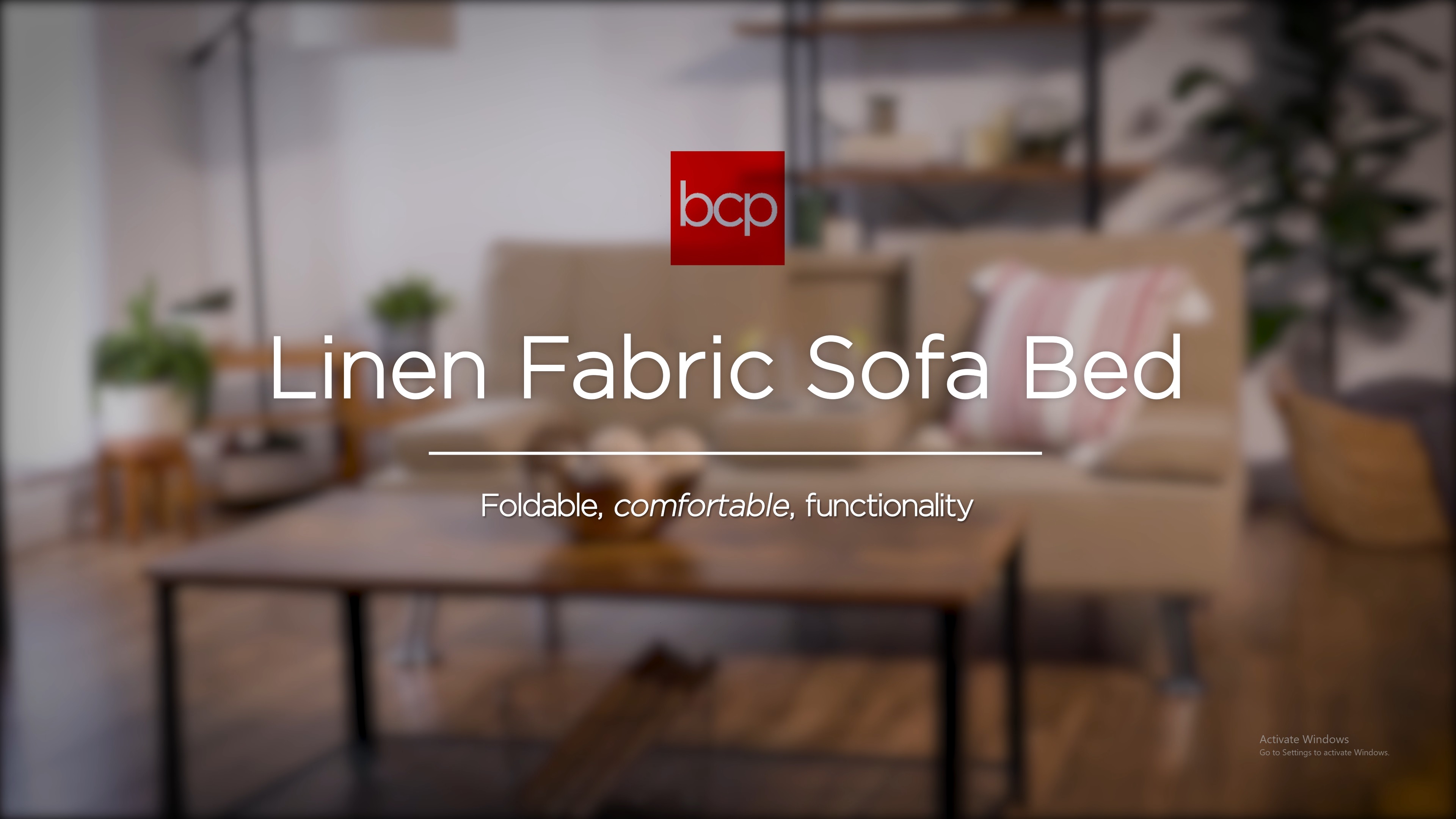 CLASSIC DESIGN: Fashioned with natural linen and 4 chrome metal legs, this convertible futon sofa fuses comfort and style