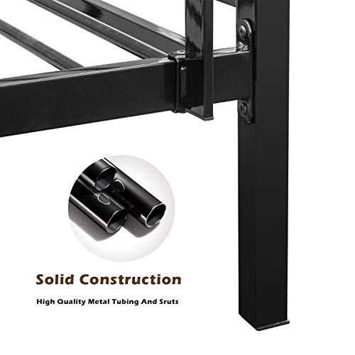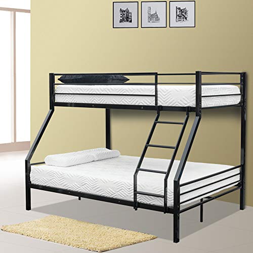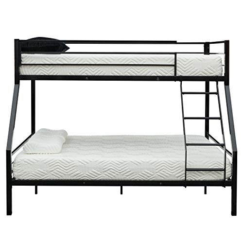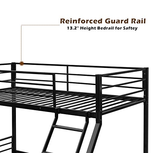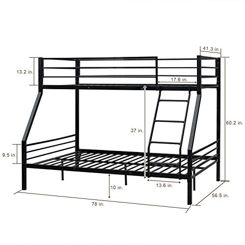 Bonnlo Bunk Bed Twin Over Full Sturdy Metal Bed Frame with Flat Ladder and Guardrail for Adults/Children/Teens, Black