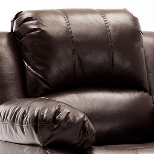 Classic Leather Recliner: Perfect for living rooms, bedrooms, and theater rooms, the sturdy pine wood frame with a heavy duty steel mechanism is designed to support up to 300 lbs, while wrapping you in comfort with premium cushion support and overstuffed armrests. The chaise style seat gives a continuous reclining surface for excellent leg support.
