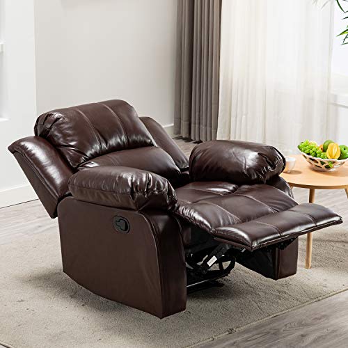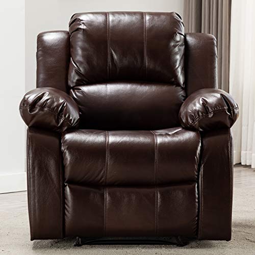 Bonzy Home Air Leather Recliner Chair Overstuffed Heavy Duty Recliner – Faux Leather Home Theater Seating – Manual Bedroom & Living Room Chair Reclining Sofa (Red Brown)