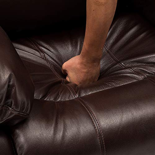 Deep Cushioned Comfort: Sit back and relax on comfy, high-resiliency foam cushions wrapped in leather. Effortless one-pull reclining motion causes you back. Bathed in a warm, cocoa brown hue, this leather recliner chair makes a bold impression. The divided bustle design and puckered stitching really hits the mark on luxe style and feel.