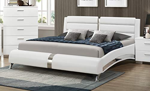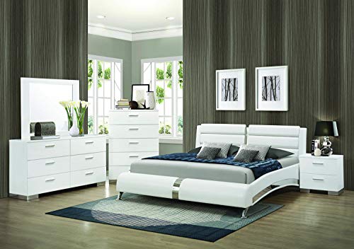 The Felicity collection presents this well-designed bed with a touch of class. It features straight lines and sumptuous curves for a contemporary allure. The headboard is fashioned with cushioned paneling for a unique look. The bed is stunningly finished in coated polyurethane that’s polished to a high gloss. The chrome-like accents give this bed an exquisite appeal fit for any modern bedroom.