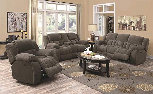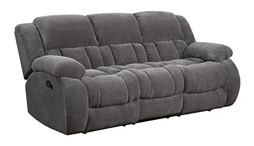 Comfortable and classy, this modern motion sofa is great for lounging. The cool charcoal upholstery emits a contemporary aura. Cozy and relaxing, the plush scoop seating allows you to sink into the cushions. Cushioned seat back and head and arm rests offer ample comfort to every seat. Two reclining seats make this sofa great for an afternoon nap or movie night.