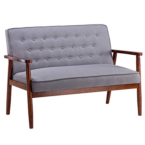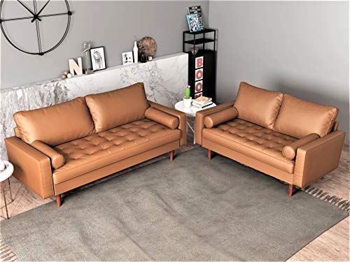 Whether you’re gathering The family around for movie night in the den or just kicking back Solo as you sip your morning coffee this Loveseat makes the perfect perch. Anchor your space in mid-century modern style with this retro loveseat. Founded on a solid and manufactured wood frame, this Loveseat features a streamlined silhouette with a pair of back cushions, track arms, and round tapered Legs in a pecan finish. Faux leather upholstery envelops the loveseat, accented by corded edges and button tufting for a tailored touch. A single firm foam-filled seat cushion and a pair of leather bolster pillows offer comfortable support. The loveseat measures 57.87″L x 33.07″W x 31.69″H, Weighs 71.90. and requires assembly. Container Furniture Direct has been supplying customers with originally designed furniture that is modern, Sturdy and comfortable all rolled into one So You don’t have to compromise looks For Comfortability.