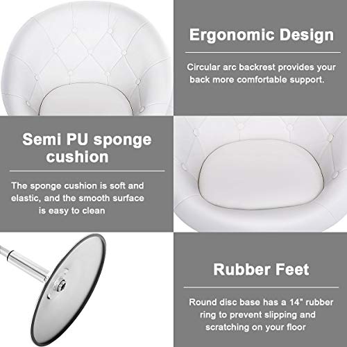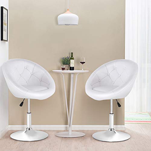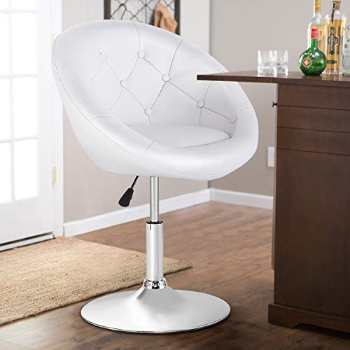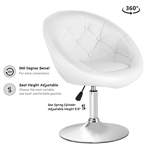 Costway Swivel Accent Chair, Contemporary Tufted Round-Back Tilt Chair with Chrome Frame, Height-Adjustable Modern for Lounge, Pub, Bar, White