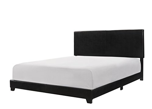 Clean lined simplistic design of this upholstered bed lends itself to a variety of home decor options. With a neutral black faux leather upholstery, matching this to your home is made easy. The padded headboard offers extra comfort.Versatile design