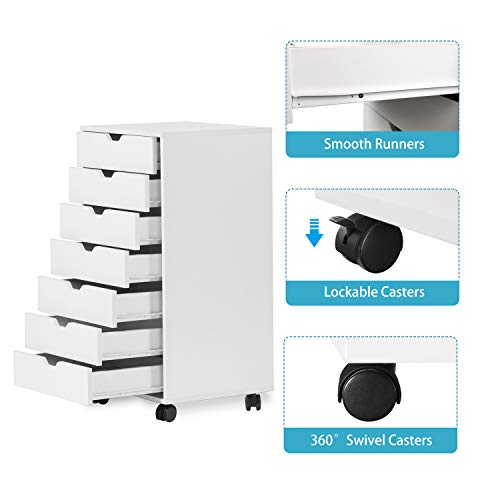 DEVAISE 7-Drawer Chest, Wood Storage Dresser Cabinet with Wheels, White