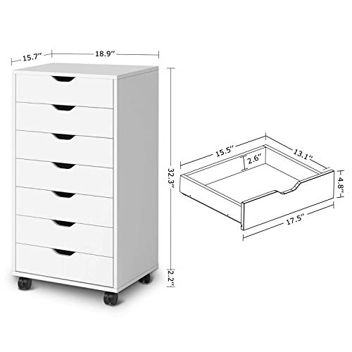 SPACIOUS STORAGE: Sized 18.9″ W x 15.7″ D x 34.5″ H (including wheels). This chest gives you seven drawers for putting all your clothes away. Each drawer can hold up to 18 pounds. Keep neat under control by storing all of your clothing and accessories in one convenient place.