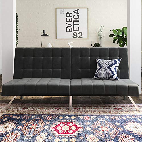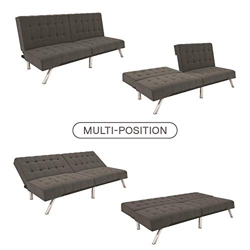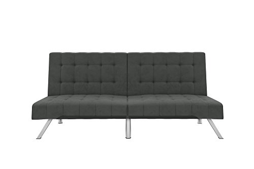 DHP Emily Futon Couch Bed, Modern Sofa Design Includes Sturdy Chrome Legs and Rich Velvet Upholstery, Grey 698ef436f261e