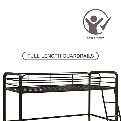 The Junior Metal Loft Bed by DHP is perfect for any child in your house. Fitting for smaller rooms, the space-saving metal frame design of this loft bed is durable and solid through years of use.