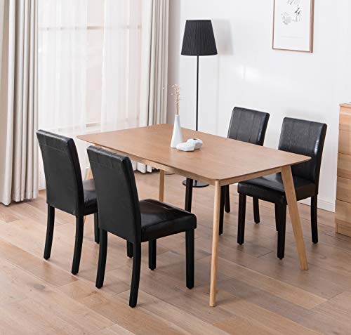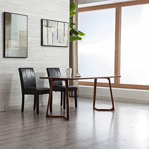The seat and back are padded with high-density foam for great comfortable feeling. Espresso finish on the wooden legs, the frame create a modern look that adds a touch of luxury to any dining area