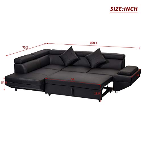 FDW Sofa Sectional Sofa for Living Room Futon Sofa Bed Couches and Sofas Sleeper Sofa Modern Sofa Corner Sofa Faux Leather Queen 2 Piece Modern Contemporary