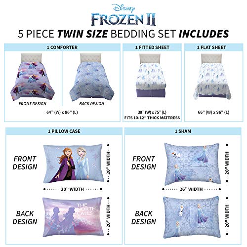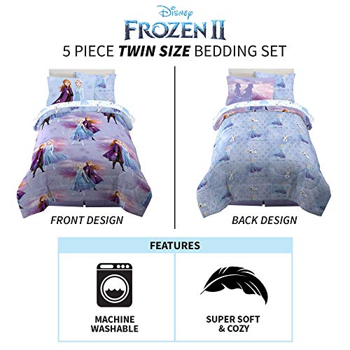 ★ FUN AND COLORFUL: Soft shades of purple and blue bring “Snowflake Magic” to bedtime as she’s tucked into this cool and colorful bedding set. Memorable imagery from the Disney film Frozen 2 adds playful style to this animated bedding.