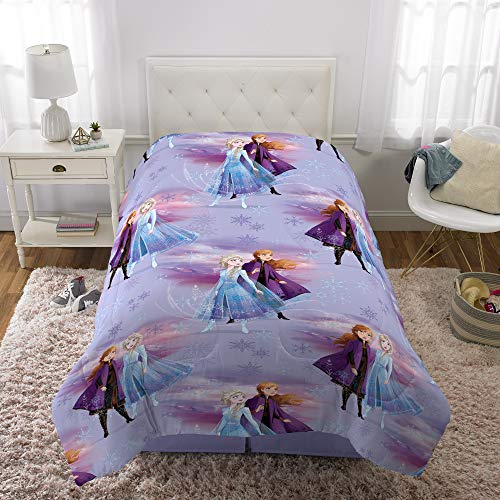 ★ TWO DESIGNS IN ONE COMFORTER: This reversible comforter lets her easily switch up her bedding style with help from everybody’s favorite Disney sisters. One side is a soft purple with images of Elsa and Anna while the other features images of Elsa and Olaf on a soft blue background.