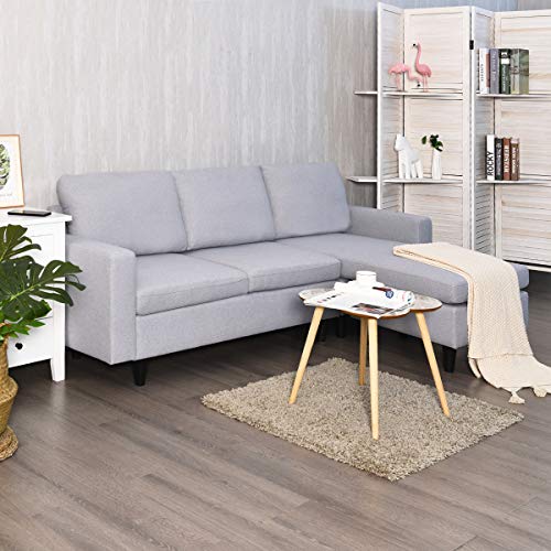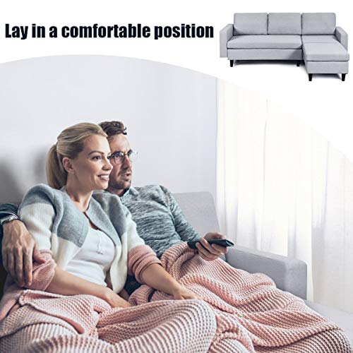 Homefurniture Giantex Convertible Sectional Sofa Couch w/Massage Back Cushion, L-Shaped Sofa Couch Plus Reversible Chaise, Linen Fabric Loveseat Couch for Small Space (Gray)