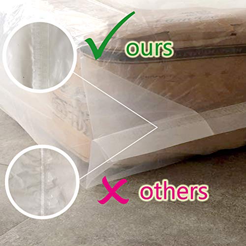 【SUPPER THICK & SAFE MATERIALS】:This waterproof mattress protector bags is made of 100% new Low-Density Polyethylene and unique formulation by Plastic Professional factory .It extra thick 6mil strengthen, highly tear and puncture resistance perfect for mattress moving strong protection.