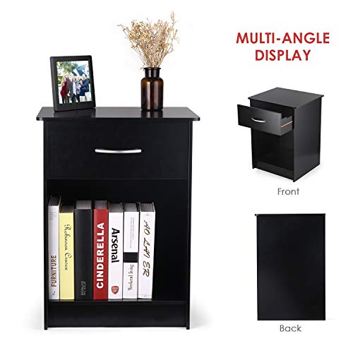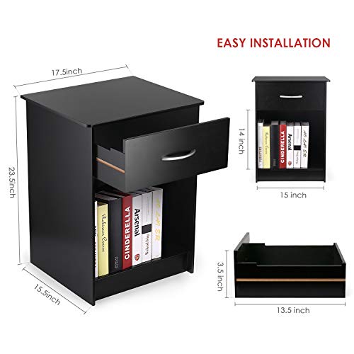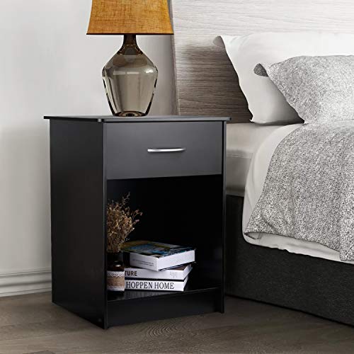 Homefurniture INTEY Modern Black Nightstand/Bedside Table with Drawer and Open Shelf, MDF Tall Bedroom End Table