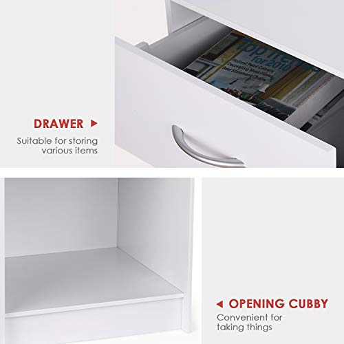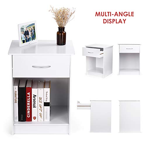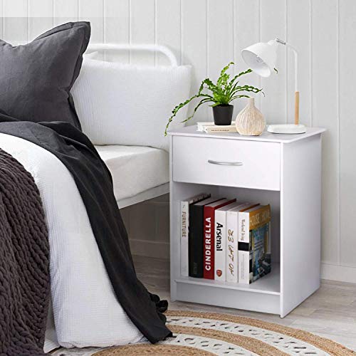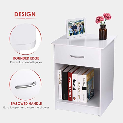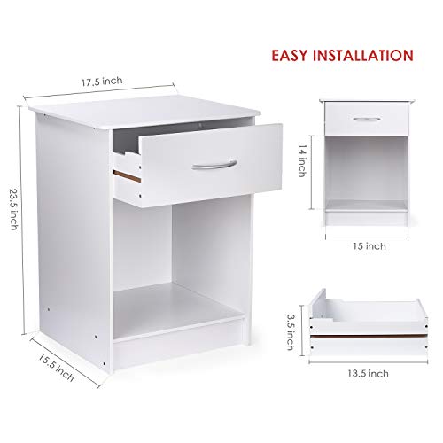 INTEY White Nightstand, Bedside Table with Drawer and Storage Shelf, End Table for Bedroom Living Room Home Furniture