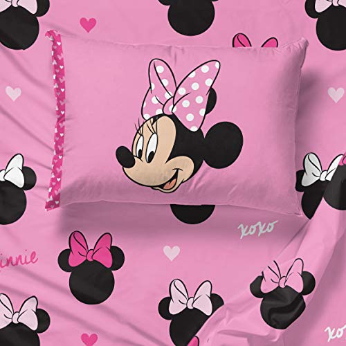PERFECT FIT & FUN DESIGN – This Minnie Mouse twin bed set includes (1) 64 inch x 86 inch twin Comforter, (1) fitted sheet 39 inch x 75 inch, (1) flat sheet 66 inch x 96 inch, and (1) standard pillow case 20 inch x 30 inch. Add a touch of decorative enchantment to your room with our fashionable and super soft Disney Minnie Mouse Bed Set.
