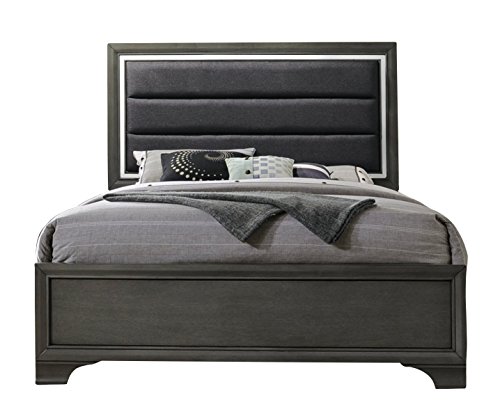 Finish: Gray. Materials: Wood. Faux Leather Headboard
