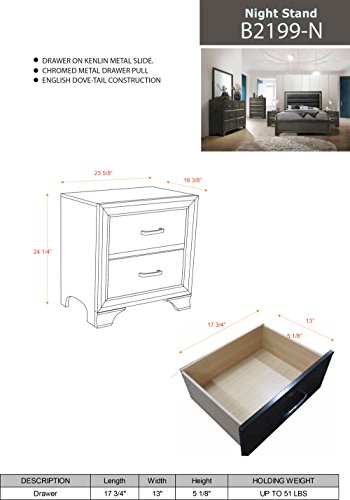 - Nightstand: 24″W x 16″D x 24″H – 37 LBS