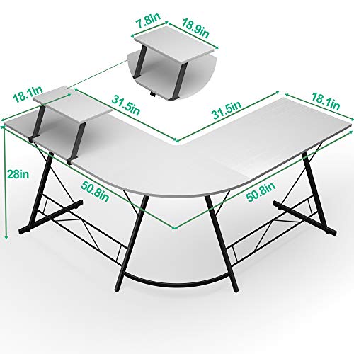 【Large Size & Ample Space】- Overall dimensions are 50.8”(L) x 18.1″(W) x 28″(H), plenty of leg room for rest and for storage. This L shaped gaming desk includes necessary tools and instructions ,please install as Instructions steps and avoid reassembling .