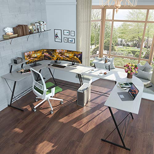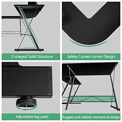 【L Shaped Computer Desk with Wide Monitor Shelf & Leveling Studs]】-Wide desktop Sleek & Beveled. you will have plenty of surface space for writing, computer work and other home office activities.Adjustable leveling studs are included to keep the desk stable even on uneven floor.