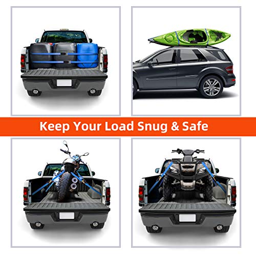 The Ohuhu Ratchet Tie Downs are built for strength and support for tying down cargo, equipment and vehicles. The straps are made with high-quality premium grade materials for extra durability and the hooks and handles are rubber coated to prevent damage. They can be used for moving appliances, bikes, vehicles, camping equipment, outdoor tools and more.