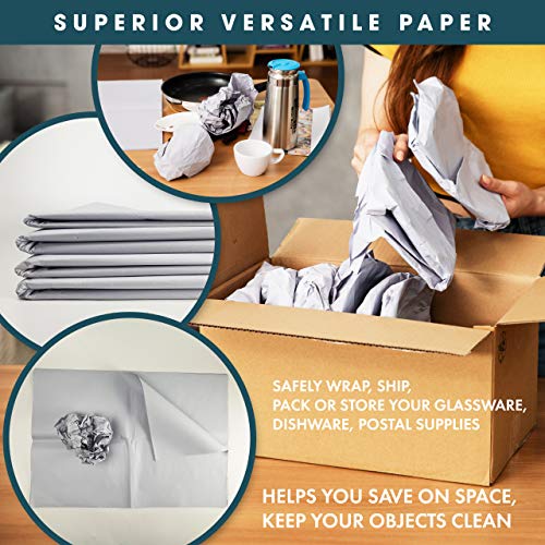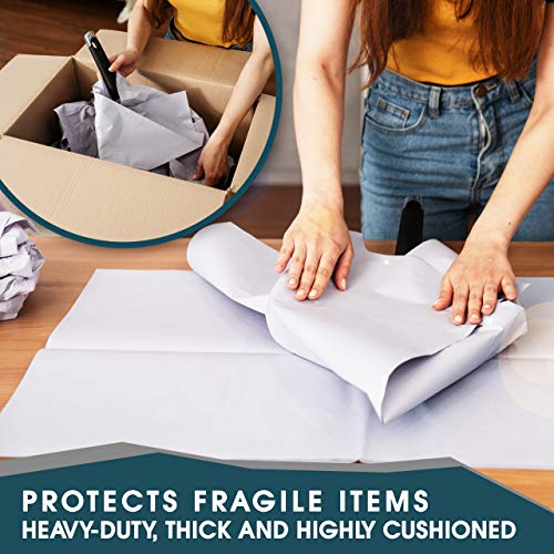 PROTECTS FRAGILE ITEMS: Heavy-duty, thick and highly cushioned, these packing paper sheets provide an excellent protective cushioning layer that cradle your delicate items and absorbs vibrations, shock and scratches. The perfect way to wrap and protect glasses, ceramic dishes, and other breakable items.