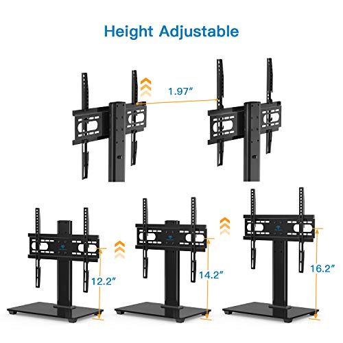 ✅ adjustable Height this universal TV stand has it all 15-Minute installation 4 inches of height adjustment 4 positions to suit different applications or TV sizes