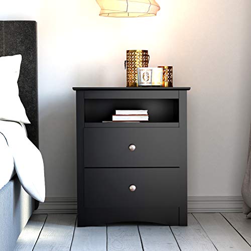 This stylish Tall Night Stand features an open shelf that is perfect for bedside reading material. Other features include two drawers, a profiled top, arched kick plate, solid brushed nickel knobs and drawers that run on smooth, all-metal roller glides with built-in safety stops. As a higher quality ready-to-assemble product it is made from durable composite woods. Matches other items from Prepac’s Sonoma collection.