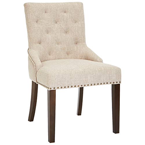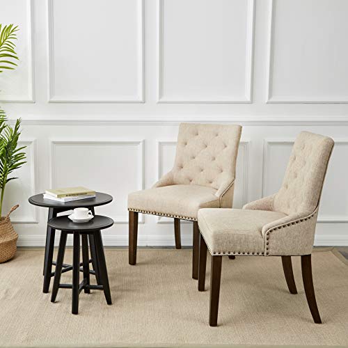 Homefurniture Red Hook Martil Tufted Upholstered Dining Chair with Nailhead Trim – Set of 2, Biscuit Beige