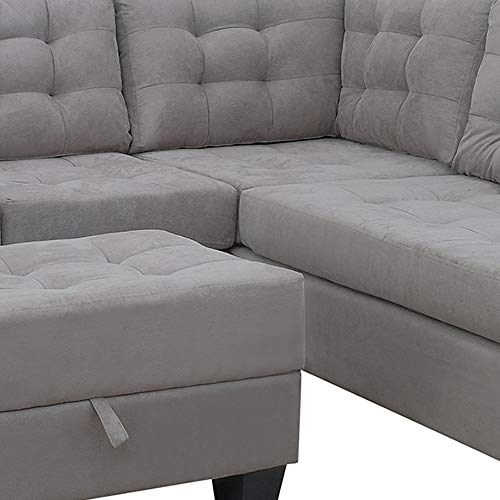 Product Type Corner Sectional. Design Stationary,Orientation Symmetrical. Pieces Included Sectional, two cushion and ottoman. Upholstery Material Polyester Blend. Seat Fill Material Foam.