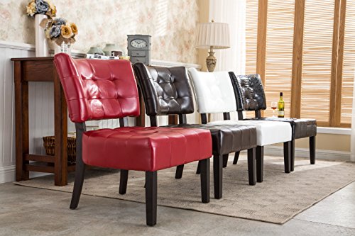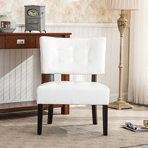 This luxurious tufted literate chair features decorative line tufting on the seat’s back. Solid wood legs blend perfectly with the simple design.