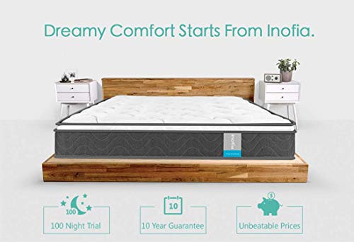Inofia Sleeping 8 inch Hybrid Comfort Eurotop Innerspring Mattress-Plush Yet Supportive-Pressure Relief
