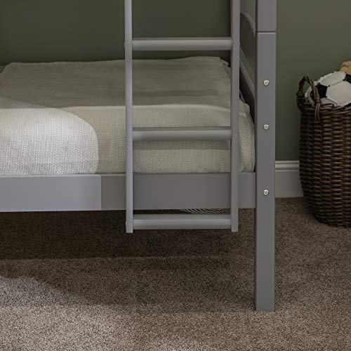 Design your kid’s bedroom or guest room with this classic twin over twin bunk bed. Crafted from solid pine wood, this traditional bunk bed is sturdy and exceptionally stylish. Features full length guardrails and an integrated ladder, for safety and easy access to the top bunk. A great solution for space-saving needs, this bunk bed can also convert into two individual beds for versatility, when needed. Each bunk can support up to 250 pounds.