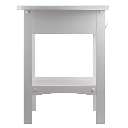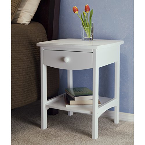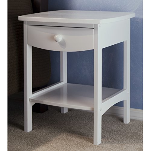 Combining solid beechwood construction with a tidy and practical style, this versatile end table/night stand makes a fresh and clean addition to the room. The oversized tabletop features a straight-edged square shape, while below the four rectangular legs host a deep storage drawer and open shelf. For subtle flair, the drawer front and lower side rails are sculpted with a wide curve that softens the table’s overall look. Also notice how the wood nailhead accents and a simple drawer pull offer a tailored finish. Classic enough to stay in style no matter how the furnishings around it change, this table comes in four handsome finishes: Natural, Walnut, Black, and White. It measures 18 inches in diameter by 22 inches high. –Kara Karll