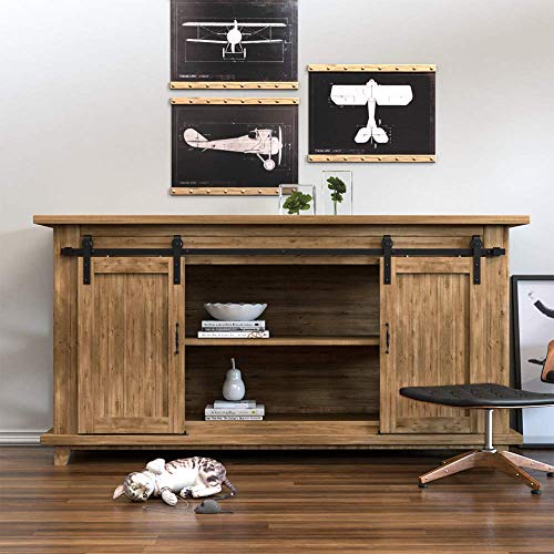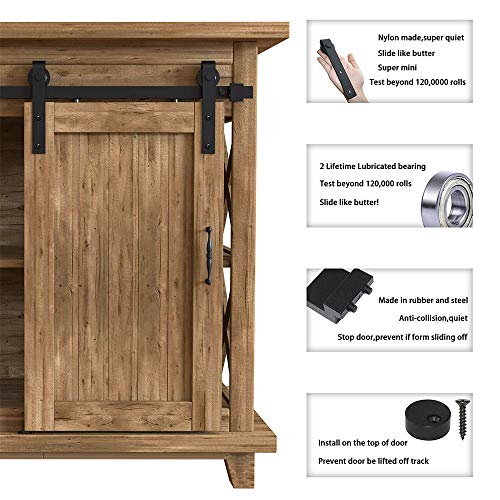 WINSOON 6FT Super Mini Sliding Barn Door Cabinet Hardware Kit for Double Doors TV Stands Small Wardrobe Cabinets, J Shape Hanger (NO Cabinet)