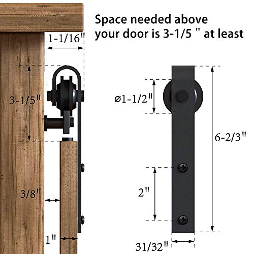 √HARDWARE DEMENSIONS: Rail: 72″(L)(Connected by two 36″ rails) x 1″(W) with 1/8″ thickness; Door Roller Mounting: 6-11/16″(H) x 1″(W); Wheel Diameter: 1-1/2″; Please see pictures for reference.