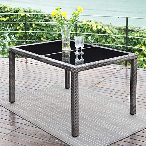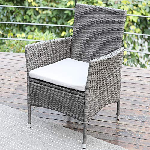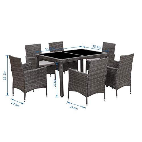 Wisteria Lane Outdoor Patio Dining Set,7 Piece Wicker Furniture Seating Conversation Rattan Chair Glass Table(Grey Wicker,Grey Cushions)