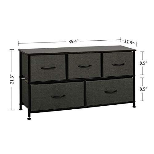 Homefurniture WLIVE Dresser with 5 Drawers, Fabric Storage Tower, Organizer Unit for Bedroom, Hallway, Entryway, Closets, Sturdy Steel Frame, Wood Top, Easy Pull Handle