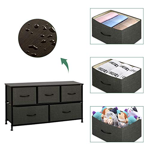 WLIVE Dresser with 5 Drawers, Fabric Storage Tower, Organizer Unit for Bedroom, Hallway, Entryway, Closets, Sturdy Steel Frame, Wood Top, Easy Pull Handle 69741539bb22e