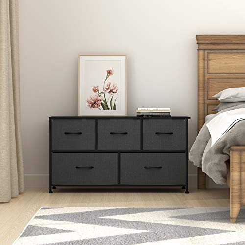 WLIVE Dresser with 5 Drawers, Fabric Storage Tower, Organizer Unit for Bedroom, Hallway, Entryway, Closets, Sturdy Steel Frame, Wood Top, Easy Pull Handle