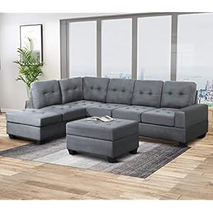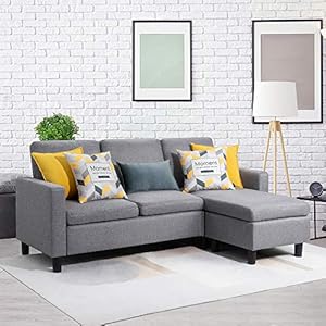 Giantex Convertible Sectional Sofa Couch w/Massage Back Cushion, L-Shaped Sofa Couch Plus Reversible Chaise, Linen Fabric Loveseat Couch for Small Space (Gray) 69473fd8c71e0